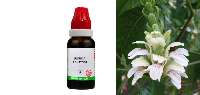 জাস্টিসিয়া এঢাটোডা একটি হোমিও ঔষধ যা Justicia Adhatoda মাদার টিংচার এবং সহযোগী উপাদান নিয়ে প্রস্তুতকৃত হয়। জাস্টিসিয়া এডাটোডা তে বিদ্যমান উপাদান সমূহ ব্রংকাইটিস,নিউমোনিয়া, যক্ষা, স্বরভংগতে বিশেষভাবে ফলপ্রসু। জাস্টিসিয়া এডাটোডা তে ব্যবহৃত ভ্যাসেসিন (Vasicine) ও ভেসেসিনন (Vasicinone) এবং Glycyrrhizin কফকে পাতলা করে এবং ব্রঙ্কাই –এর সরু পথকে প্রশস্ত করে, ফলে ফুসফুসের স্বাভাবিক কার্যক্রম বৃদ্ধি পায়। এভাবে জাস্টিসিয়া ফুসফুসের ক্ষত দূর করে ও ব্রঙ্কাইটিসের প্রদাহ উপশম হয়।